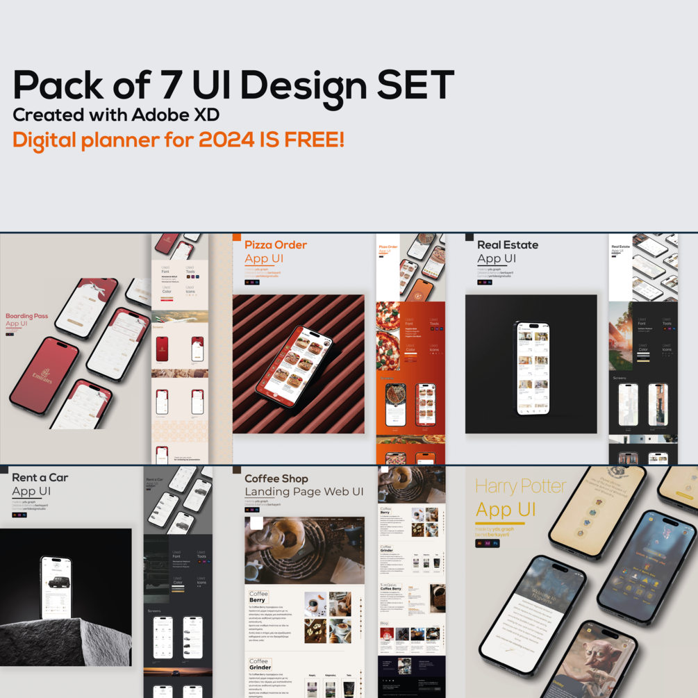 Pack of 7 UI Design SET + Digital planner for 2024 IS FREE!