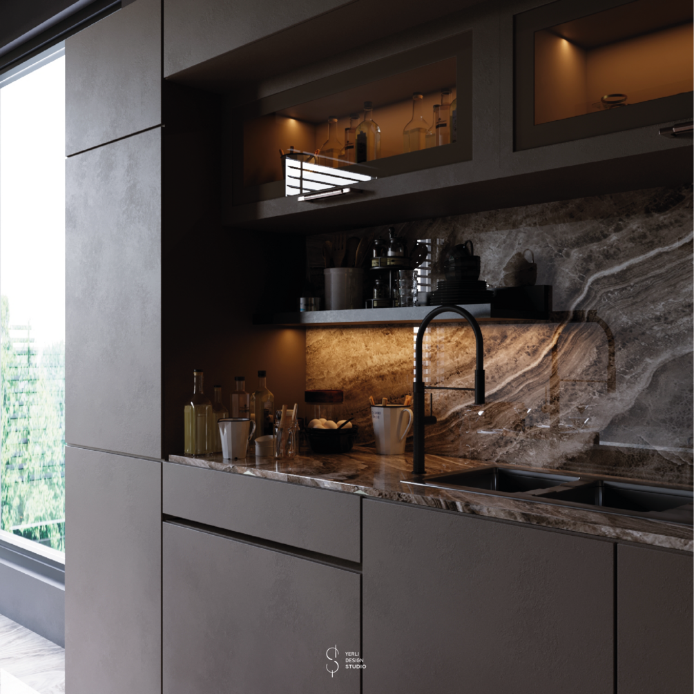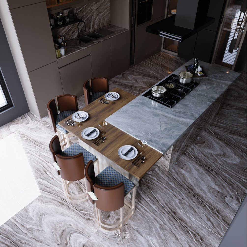 • Furniture designs were designed with 3DS Max. Many pieces of furniture do not have the textures seen in the image. Some of them were selected from "Corona material" and placed on the object. Some textures were found on the internet.